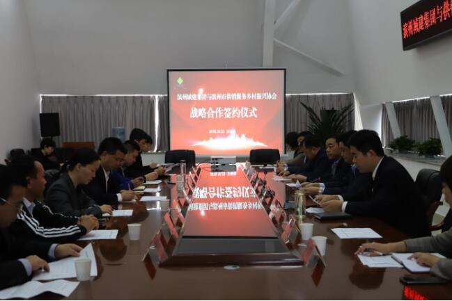 10月23日上午,山東濱州城建集團公司與濱州市供銷服務鄉村振興協會戰略合作協議簽約儀式舉行。山東濱州城建集團公司總經理曹慶訓,市供銷合作社黨委書記、理事會主任張景亮等領導出席會議。