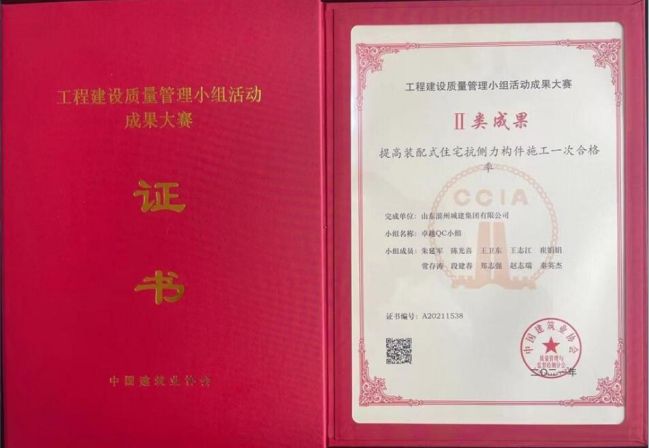 來自機電公司的卓越QC小組完成的《提高裝配式住宅抗側(cè)力構(gòu)件施工一次合格率》成果,在第一期工程建設質(zhì)量管理小組活動成果大賽中榮獲Ⅱ類成果。來自一公司的土行者QC小組完成的《提高現(xiàn)澆混凝土網(wǎng)箱結(jié)構(gòu)樓蓋平整度合格率》成果,在第三期工程建設質(zhì)量管理小組成果大賽中榮獲Ⅱ類成果。
