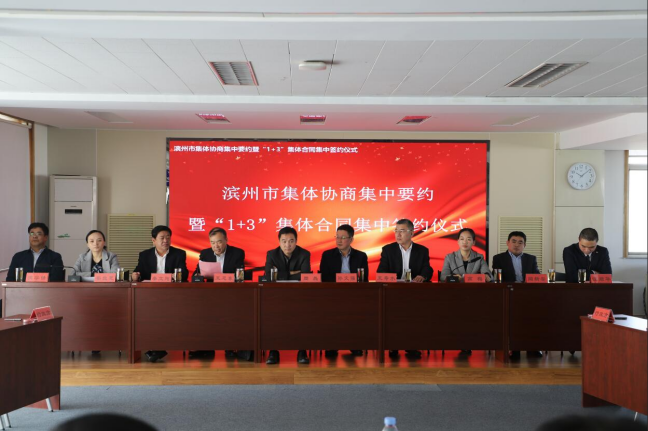 為推動(dòng)全市集體協(xié)商工作深化發(fā)展,促進(jìn)勞動(dòng)關(guān)系和諧穩(wěn)定,進(jìn)一步擴(kuò)大集體協(xié)商影響力,3月25日上午,城建集團(tuán)參加了市總工會(huì)在山東京博控股集團(tuán)有限公司會(huì)議室舉辦的全市集體協(xié)商集中要約暨“1+3”集體合同現(xiàn)場集中簽約活動(dòng)。職工方首席代表工會(huì)主席付建玲、企業(yè)方首席代表被委托人勞動(dòng)人事處長李婷婷在集體合同上簽字。